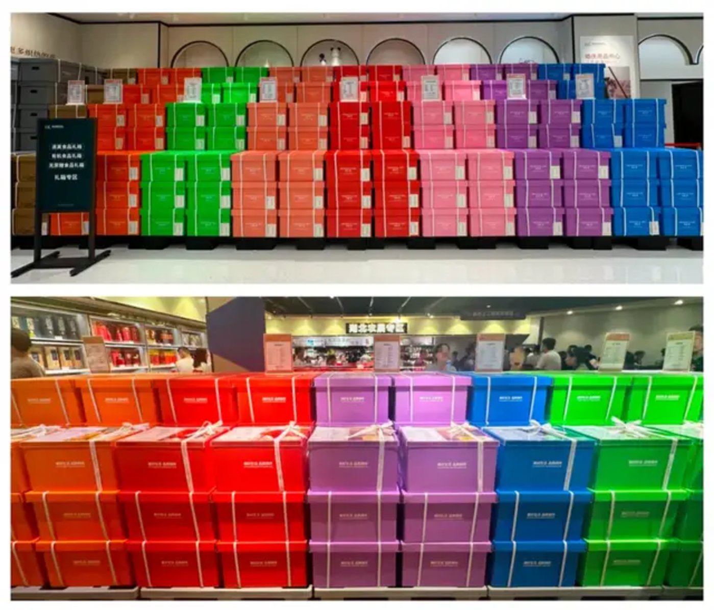 图:胖东来 (上) 与中百仓储礼箱 (下)