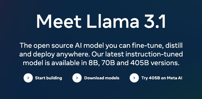 Meta 推出开源模型 Llama 3.1,包括 3 个大小版本,分别是迄今为止最强大的开源模型 Llama 3.1 405B,以及全新升级的 Llama 3.1 70B 和 8B 模型。扎克伯格声称,明年开源大模型全面领先闭源。>> 点击查看详情