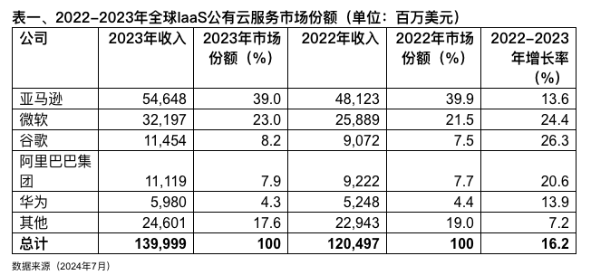 全球 IaaS 公有云市场份额:阿里云增长 华为云降