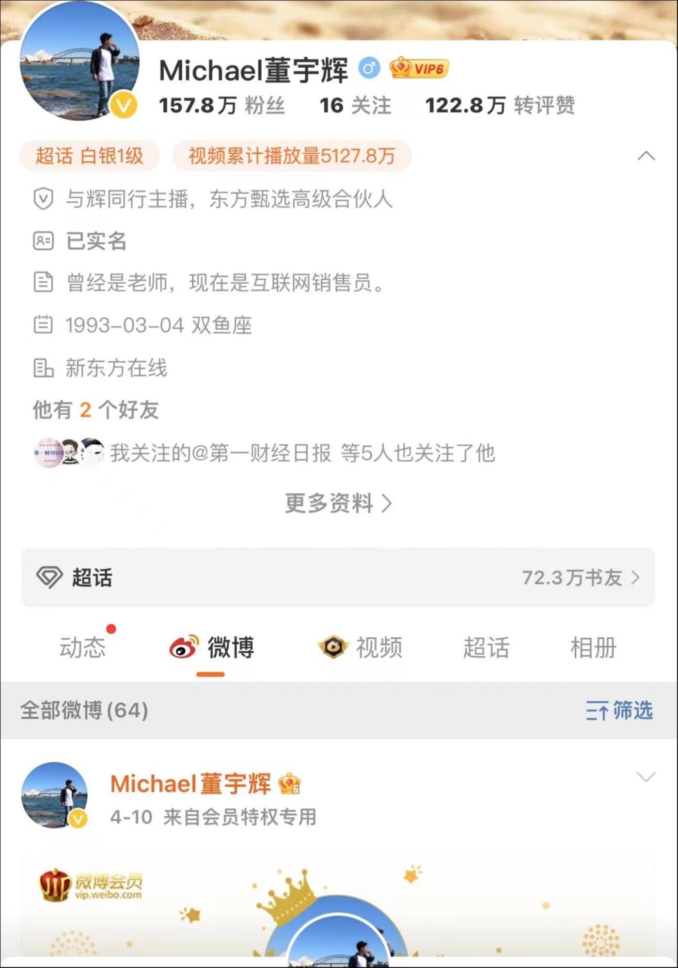 俞敏洪在微信公号老俞闲话中发布 《致东方甄选股东朋友的一封公开信》 提到,董宇辉为东方甄选的发展,做出了重大贡献,如果没有董宇辉引爆东方甄选,就没有东方甄选的迅速发展。