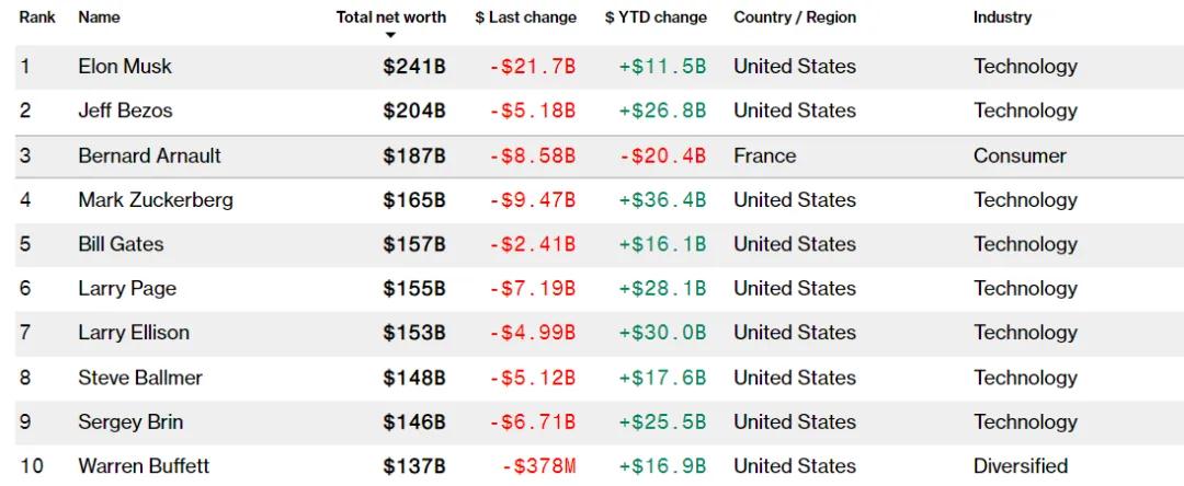 据全球前 500 富豪排行榜,今年以来,伯纳德·阿诺特的身家已累计蒸发了逾 204 亿美元 (约合人民币 1500 亿元),这是该榜单中唯一一位身家缩水超 200 亿的富豪。