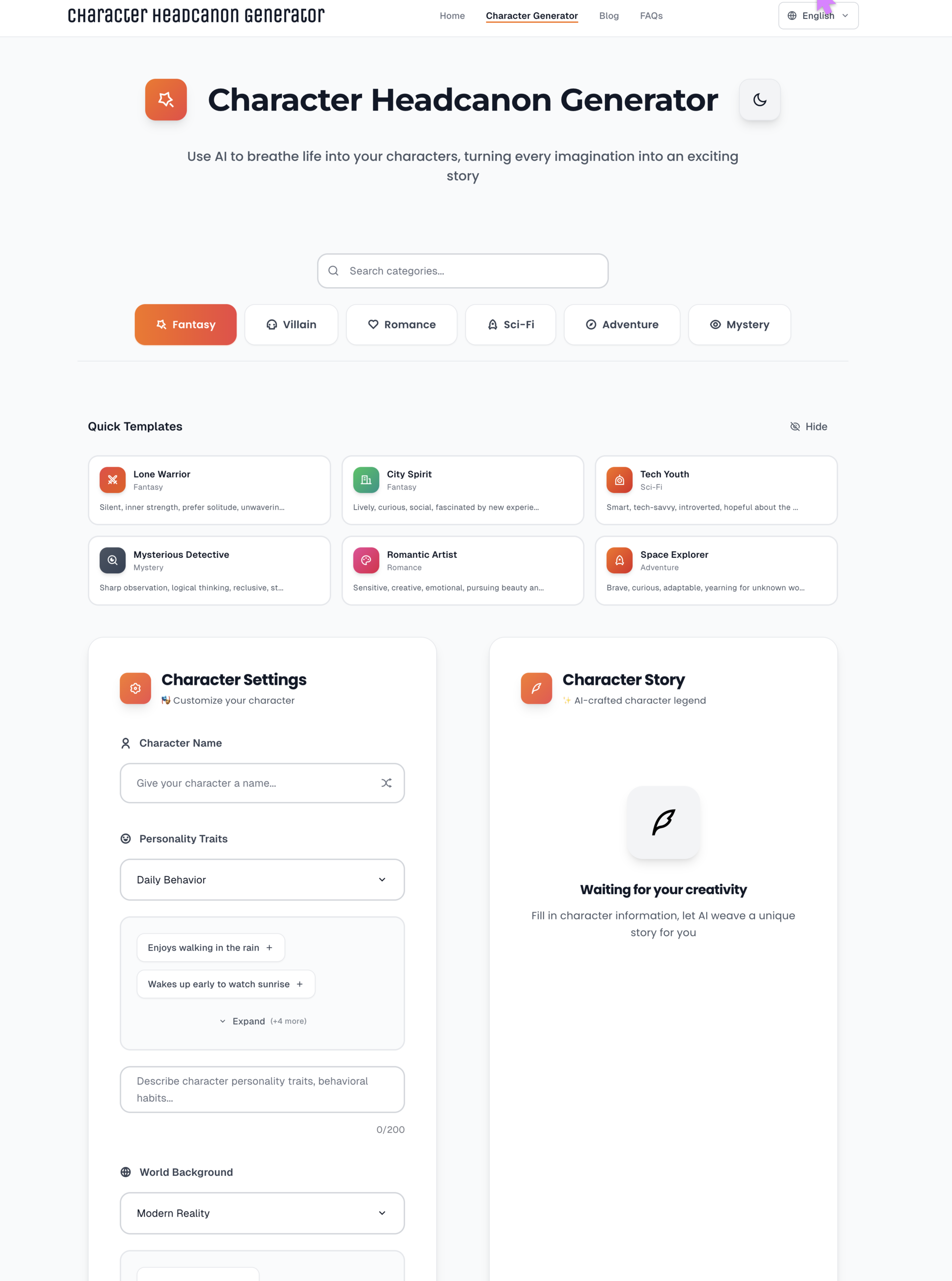 大家好,我是一名利用下班时间做副业项目的独立开发者。最近,我上线了一个全新的 AI 小工具网站 Headcanon Generator,主要用来帮助用户生成人物设定 (角色脑洞 / Headcanon),目前已经支持多模型、多语言内容生成。