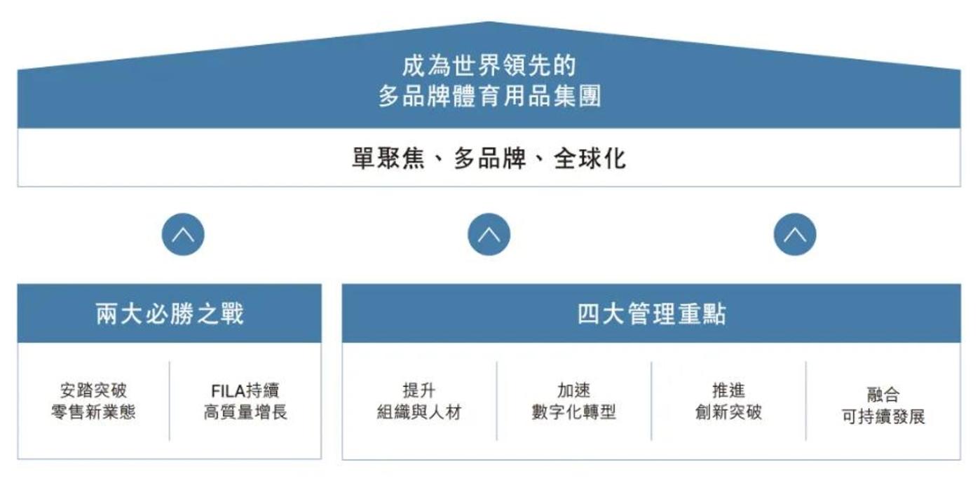 安踏的 「单聚焦、多品牌、全球化」 三大战略背后,从 2023 年还细分了两大必胜之战——安踏突破零售新业态、FILA 持续高质量增长。