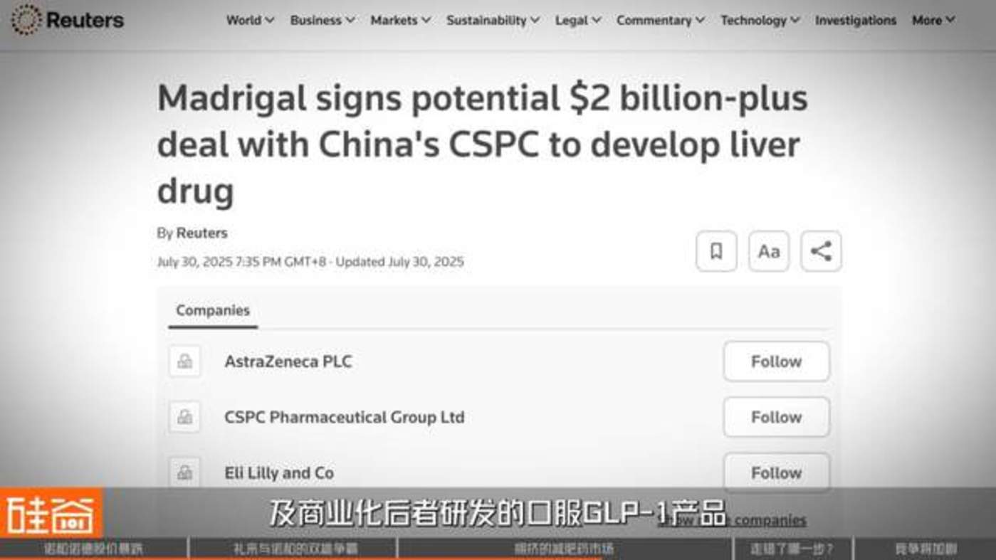 另外,中国药企在减肥药市场上持续发力。就在几天前,Madrigal Pharma 与中国石药集团达成协议,可以在中国以外开发及商业化后者研发的口服 GLP-1 产品。