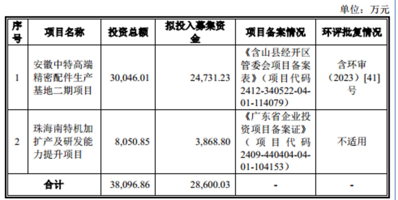 笔者注意到,南特科技此次冲击北交所 IPO 的募资额出现大幅缩水的情形。据悉,2024 年 12 月 30 日,南特科技提交的申报稿被北交所受理时,公司欲募集 42004.18 万元,具体情况如下: