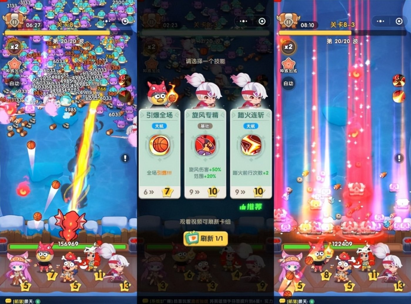 通过上面的介绍,是不是有一种熟悉感? 是的,将塔防玩法换成放置战斗,这款游戏也就成了放置类。这也是目前小游戏的一种主流的玩法融合,即用一种有趣的玩法+放置类养成体系 (很多是类 《咸鱼之王》 的养成体系)。年初爆火的 《冒险者日记》(又名 《卡皮巴拉 Go!》) 和 《保卫向日葵》,最近表现不错的 《全境守卫》 和 《超能下蛋鸭》 都是这种思路。