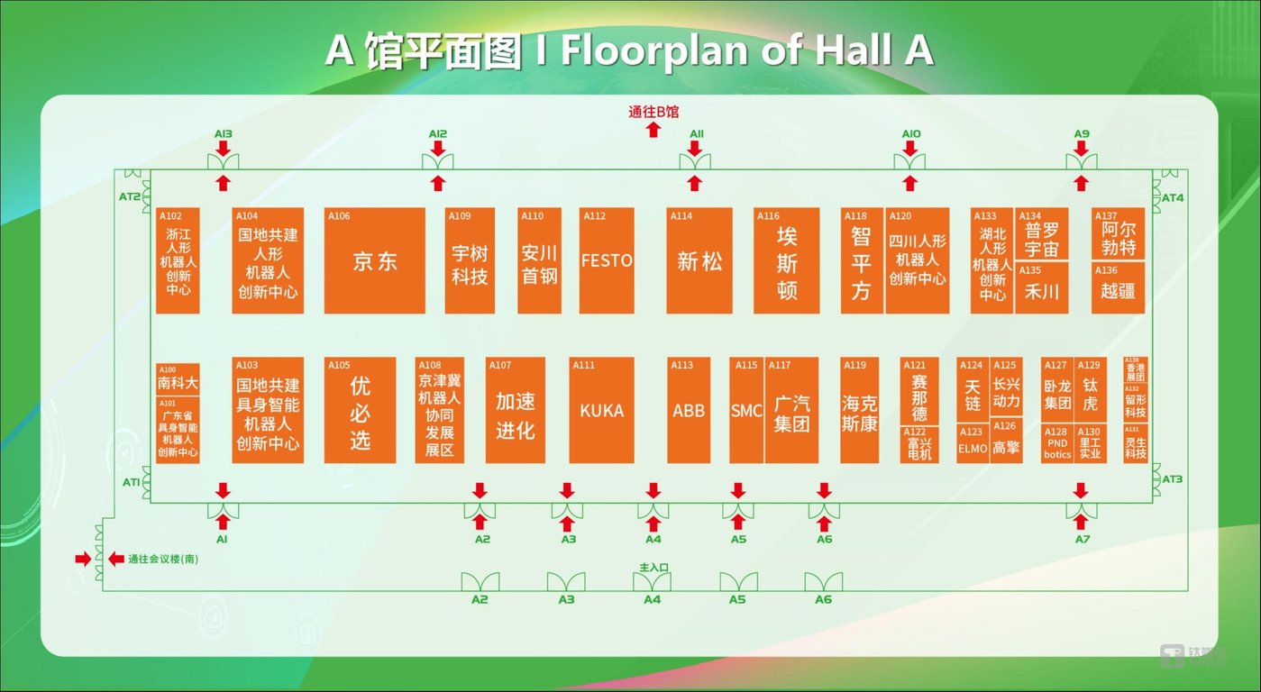 This year, Hall A spotlights embodied intelligence, anchored by two major national-local joint innovation centers from Beijing and Shanghai.