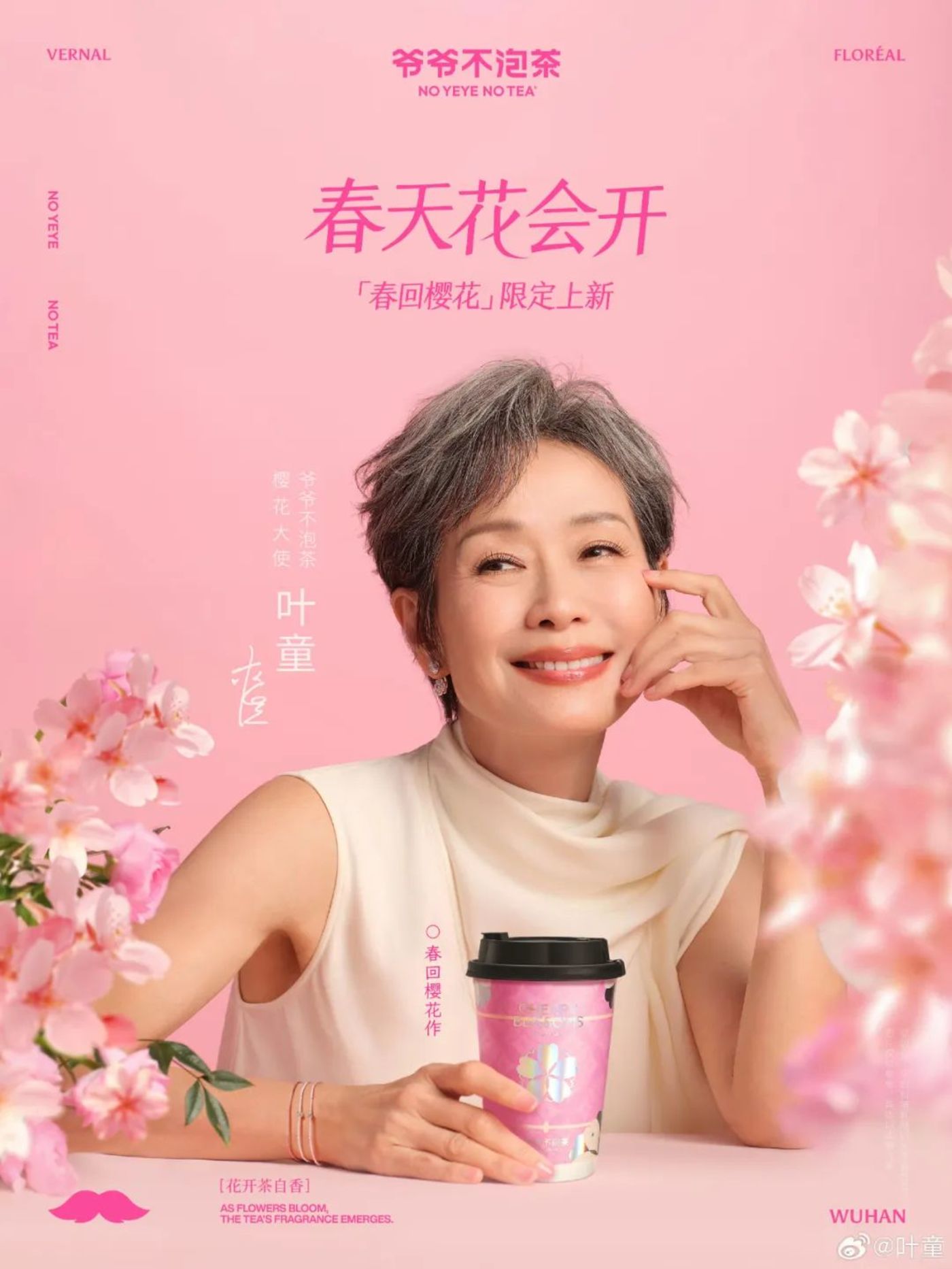 去年至今,吴彦姝、叶童等便成为了中老年明星中的 「代言收割机」,代言品牌涉及奢品、新茶饮、酒店、护肤品、运动品牌等多个垂类。如今,无论是 Prada、Bottega Veneta 等奢品,还是 SK-II 和兰蔻等护肤品、沪上阿姨和爷爷不泡茶等茶饮品牌,各大赛道的品牌都在发力银发经济。
