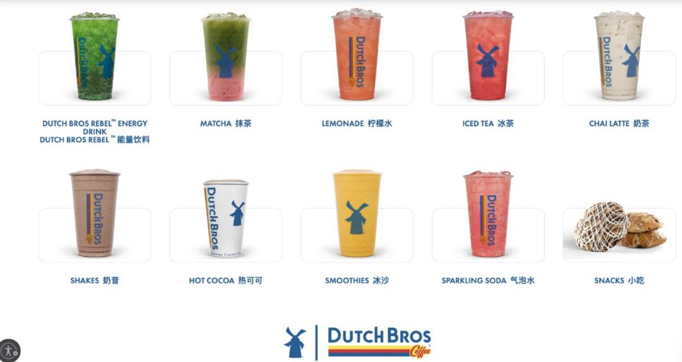 dutch bros 部分菜单分类| 图源官网