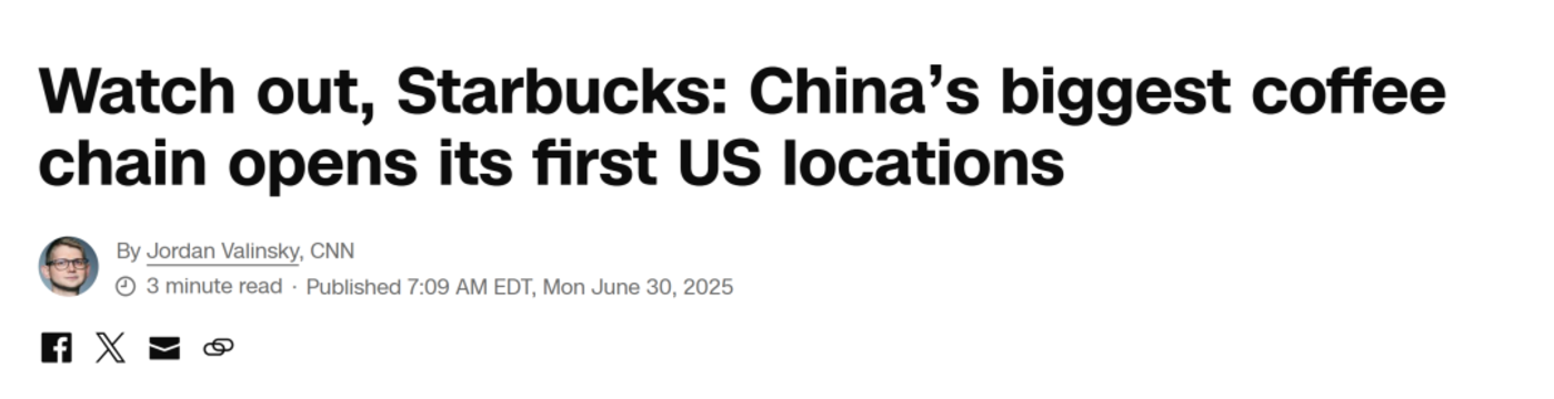 瑞幸的入驻甚至引起了诸如 CBS、纽约邮报等美国主流媒体的关注。CNN 还在报道中使用了 《星巴克要小心了:中国最大的咖啡连锁店在美国开设首家门店》 这样的标题。