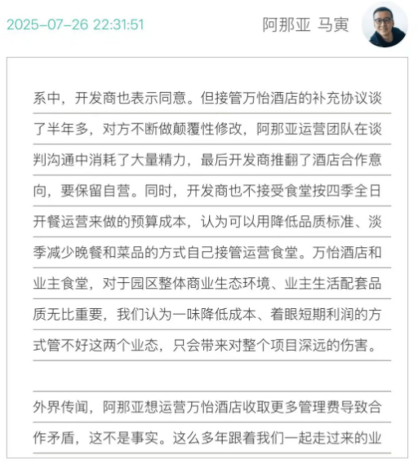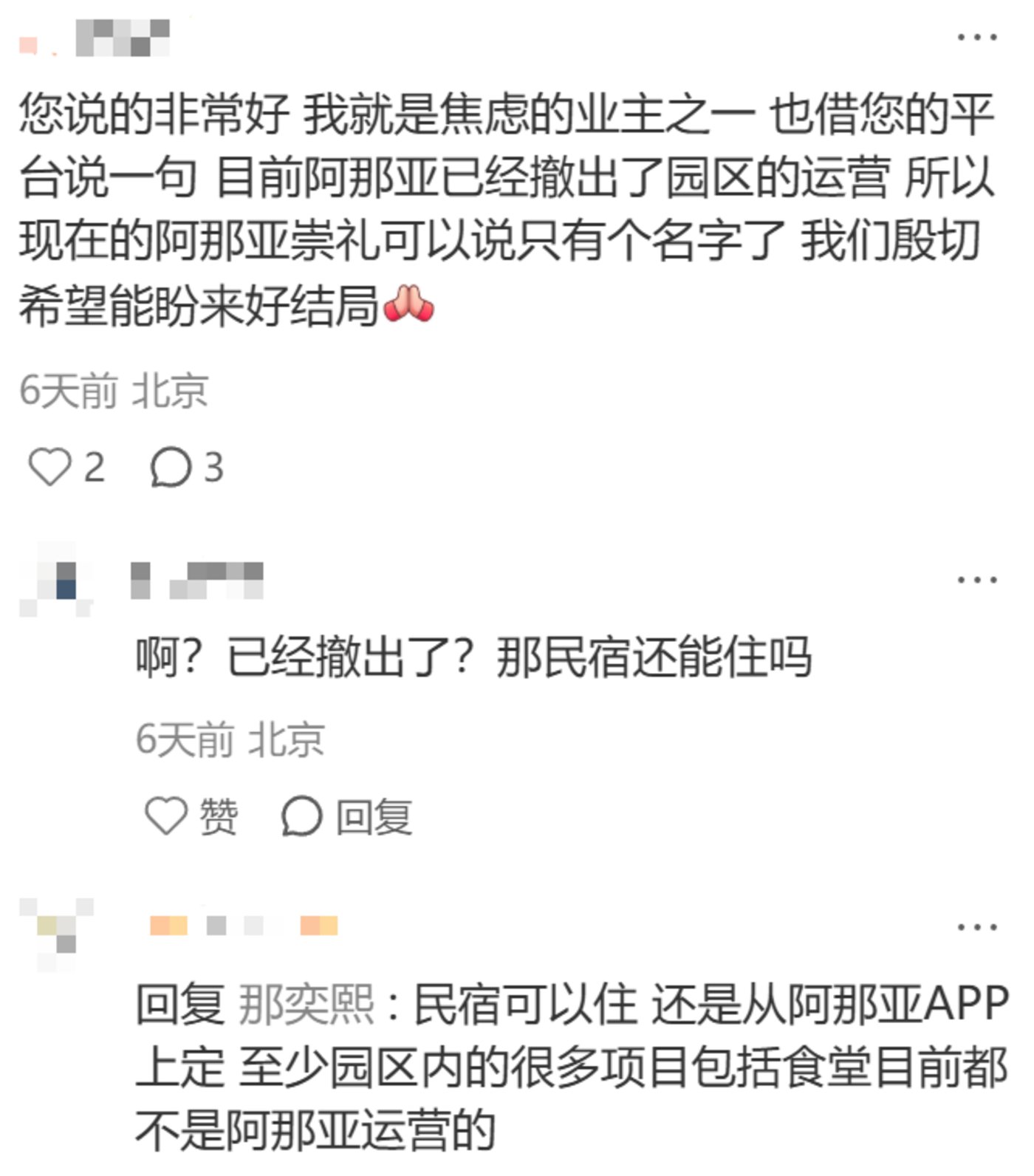 但也有网友觉得,阿那亚就是在 「甩锅」,这个项目本身就是基于合作模式,不是阿那亚自有地产,从运营维度看会出现这样那样问题前期是可以预见的,管理分歧以及利益分配问题应该在项目达成时就提前约定好。