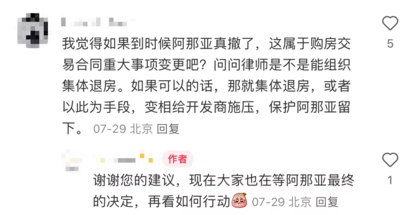 已经有业主提前找律师咨询,如果阿那亚真撤了,此前购房合约是不是算欺诈?未来哪还有人敢买阿那亚基于合作模式打造的新项目,那不是随时要面临被品牌方抛弃的可能。