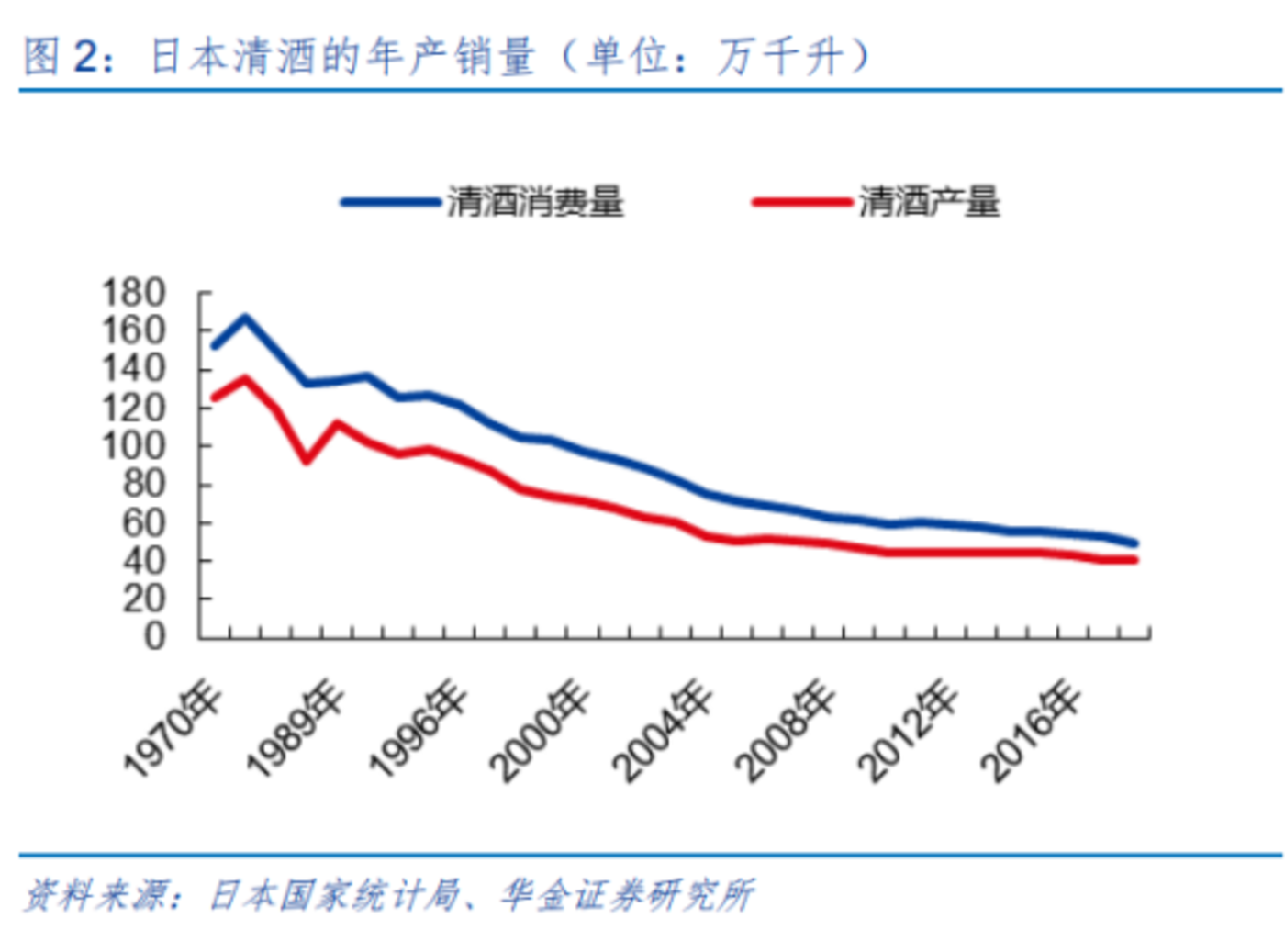 1970 年,日本团块一代开始成为社会的主力消费人群,(团块一代是指日本 1950 年左右出生人群。这部分人从小在西方式的教育下成长,消费习惯更偏西方化,加上童年时期父辈经常喝清酒宿醉,认为清酒是 「老一代人的爱好」,在酒类选择上更愿意喝啤酒、威士忌等洋酒,清酒开始被年轻群体抛弃,据日本政府统计,1970 年-1990 年,日本 70% 的年轻人从未喝过清酒。