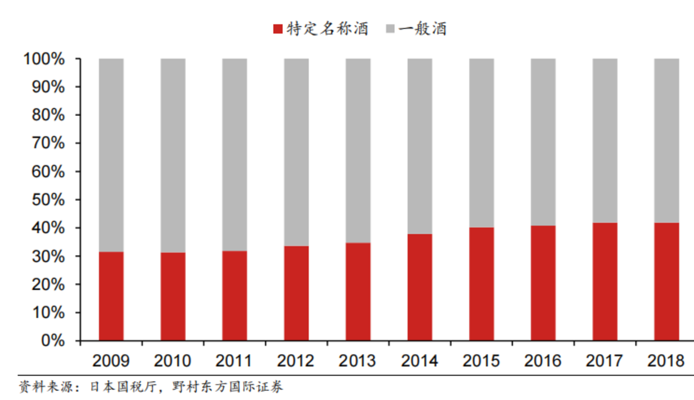比如在政策端,对酒的税收体系进行调整,酒税由从价税,改为从量税。从价税是越贵的酒税越重;从量税是酒精含量越高税越贵。而清酒常见的度数为 15 度左右,同样的价格的清酒、税收要比威士忌低很多,使高端清酒对比威士忌更具价格优势,为高端清酒的兴起奠定基础。