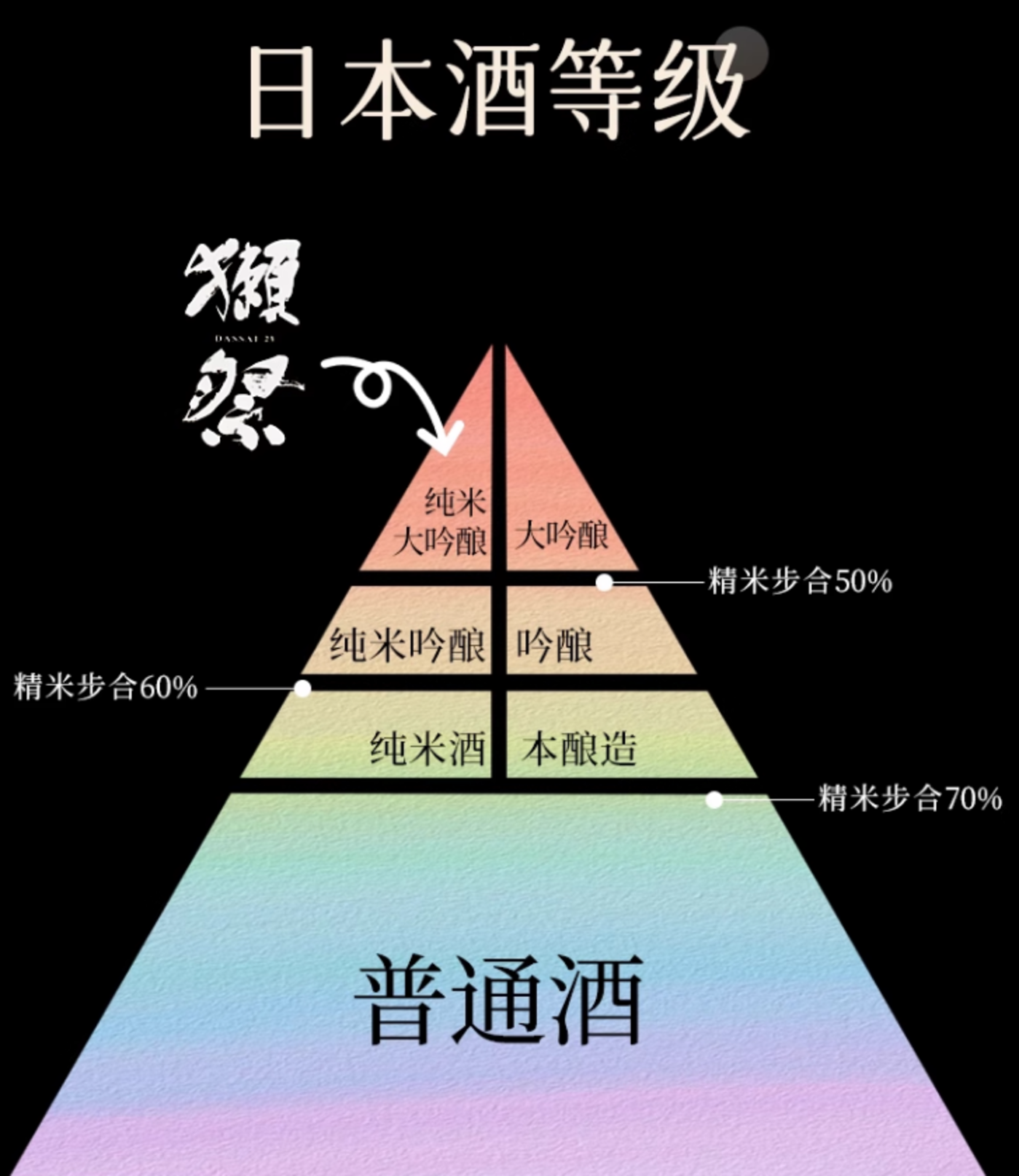 于是獭祭模仿红酒的等级打造的逻辑,开创了精米步合划分清酒等级的时代。