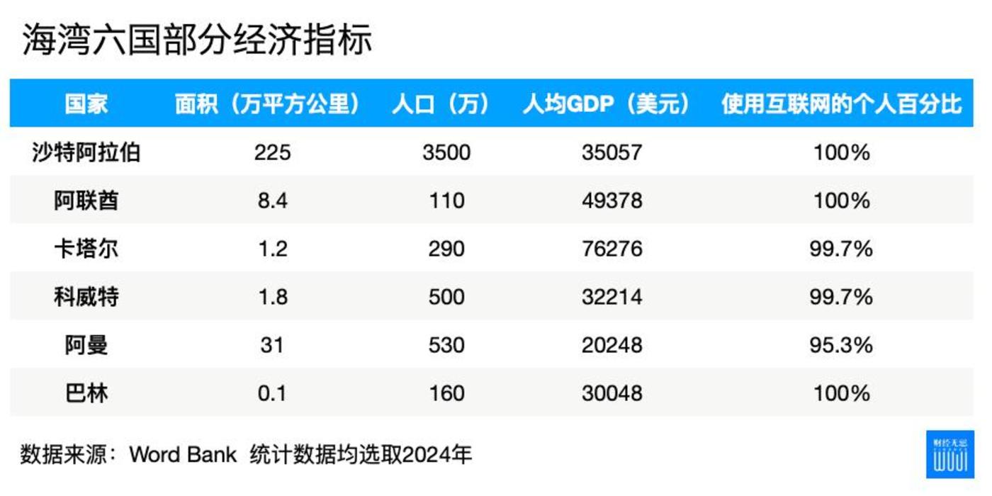 2024 年,「海湾六国」 人均 GDP 超 4 万美元,是世界人均 GDP 的 3.6 倍,远高于新兴市场经济体 1.4 万美元的平均水平。