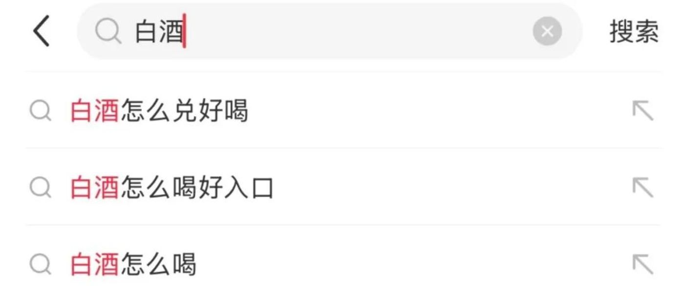 (小红书搜索 「白酒」 下常见词条)