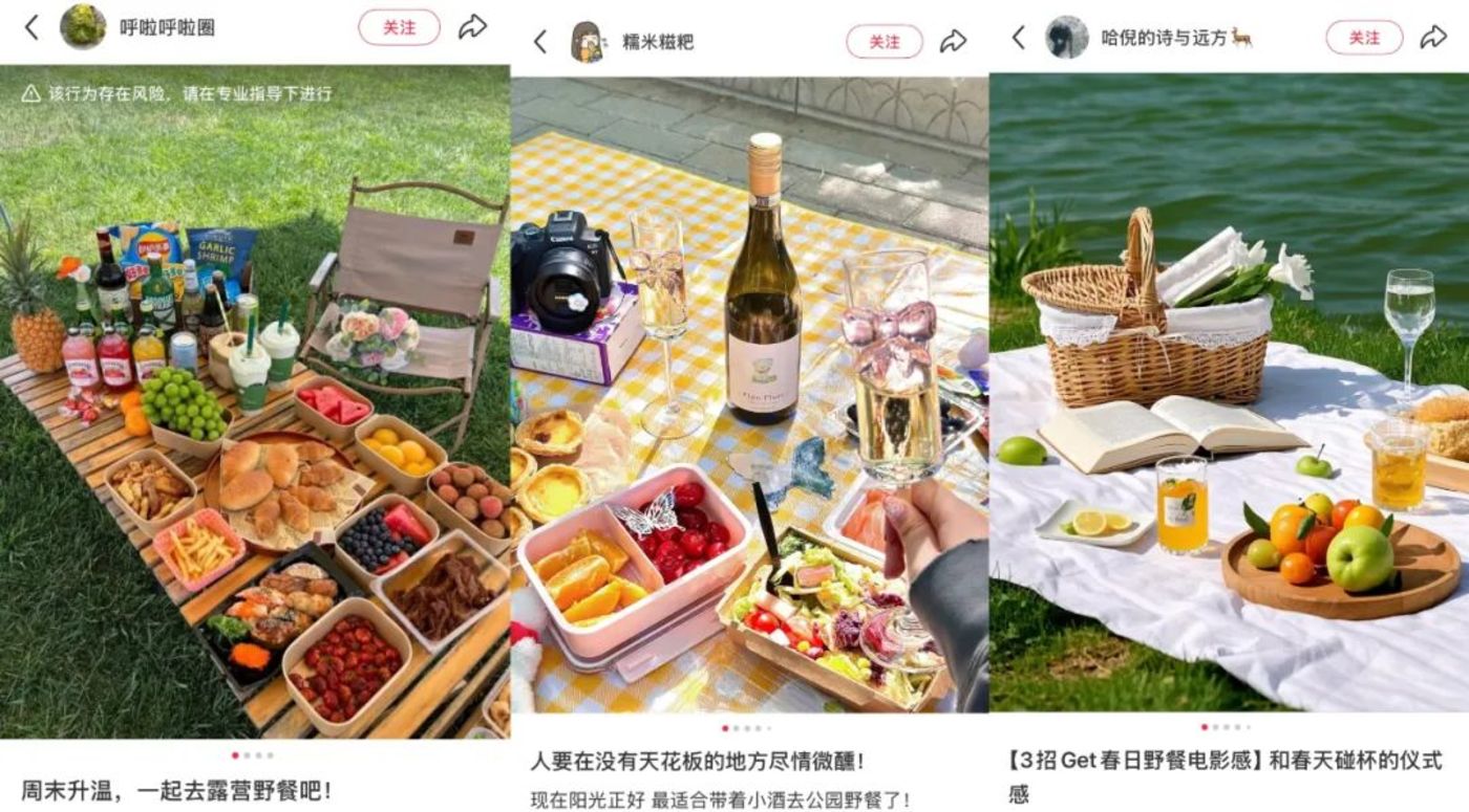 (小红书常见野餐酒水晒照)