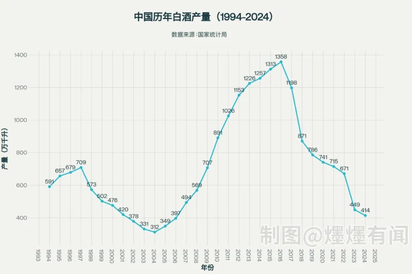 今年已经是白酒行业连续第九年产量下跌了。