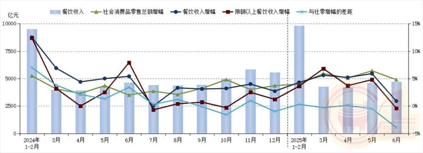 据国家统计局公布数据显示,2025 年 1-6 月,全国餐饮收入增速同比下降 3.6 个百分点,限额以上单位餐饮收入增速同比下降 2 个百分点。