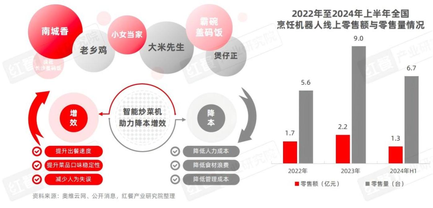 近期被京东投资而受到关注的橡鹿科技董事长杨建成也提到类似的数据,一个厨工配两台炒菜机器人的效率,等同于三个大厨配三个灶,采购一台大约 6 个月回本。