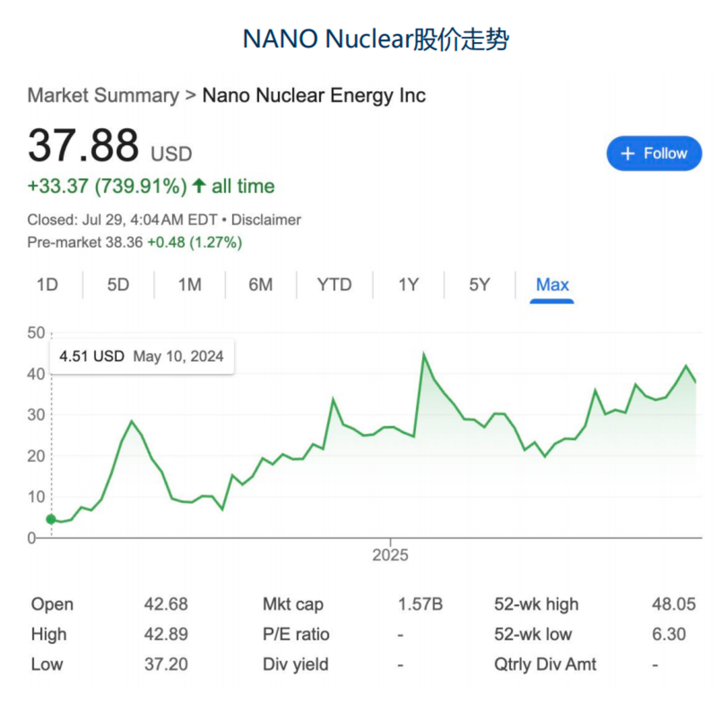 3、Nano Nuclear(微型核反应堆的先行者):2022 年成立,专注于便携式微型反应堆开发,2025 年 7 月市值 15 亿美元。2024 年 5 月上市,募集 1025 万美元。