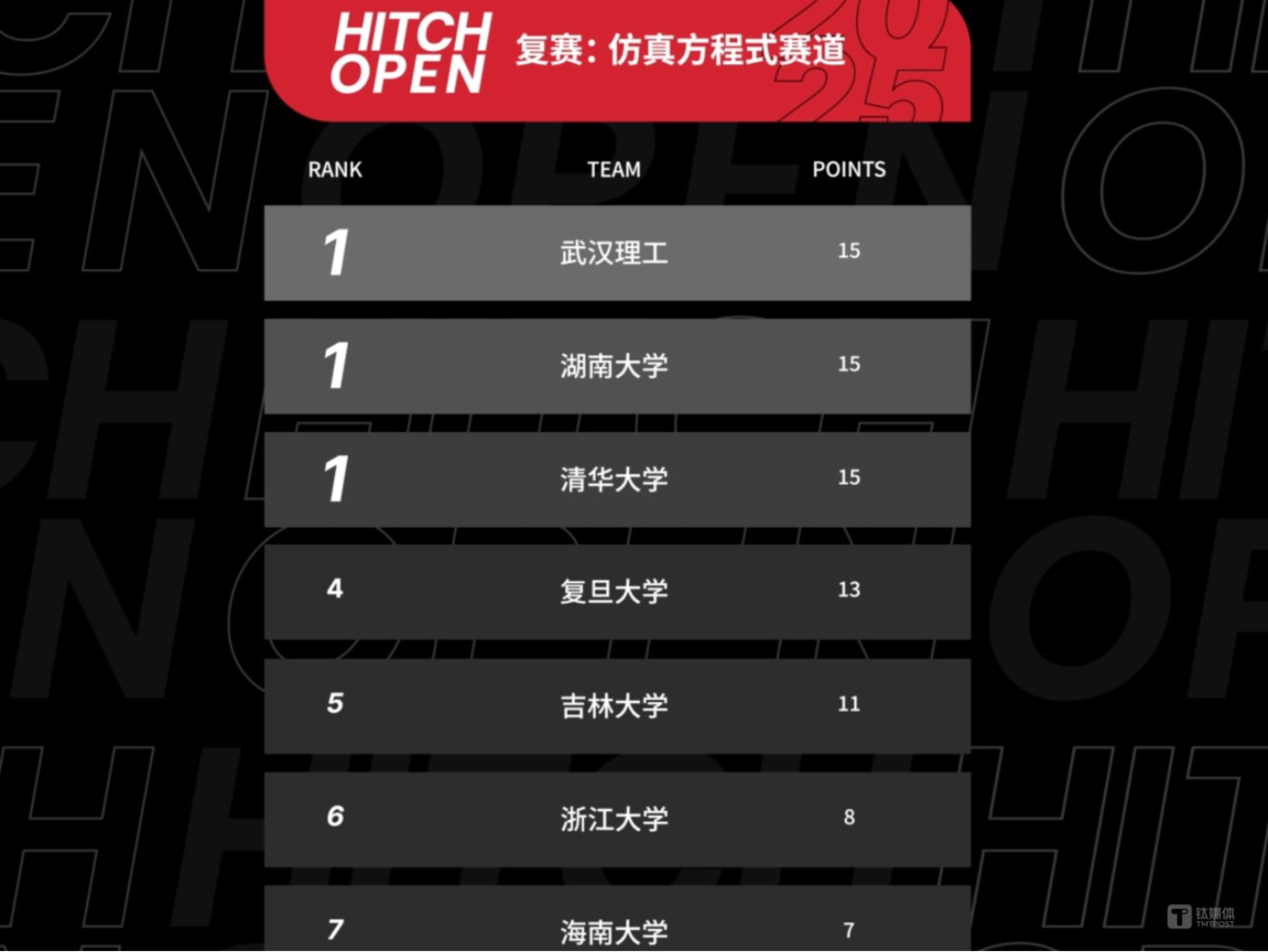 三所知名高校以同样的积分并列领跑,形成罕见的 「三强并立」 格局。这不仅彰显了各队伍在 AI 研发与应用上的均衡实力,更预示着未来的实车竞赛将掀起更为激烈的巅峰对决。