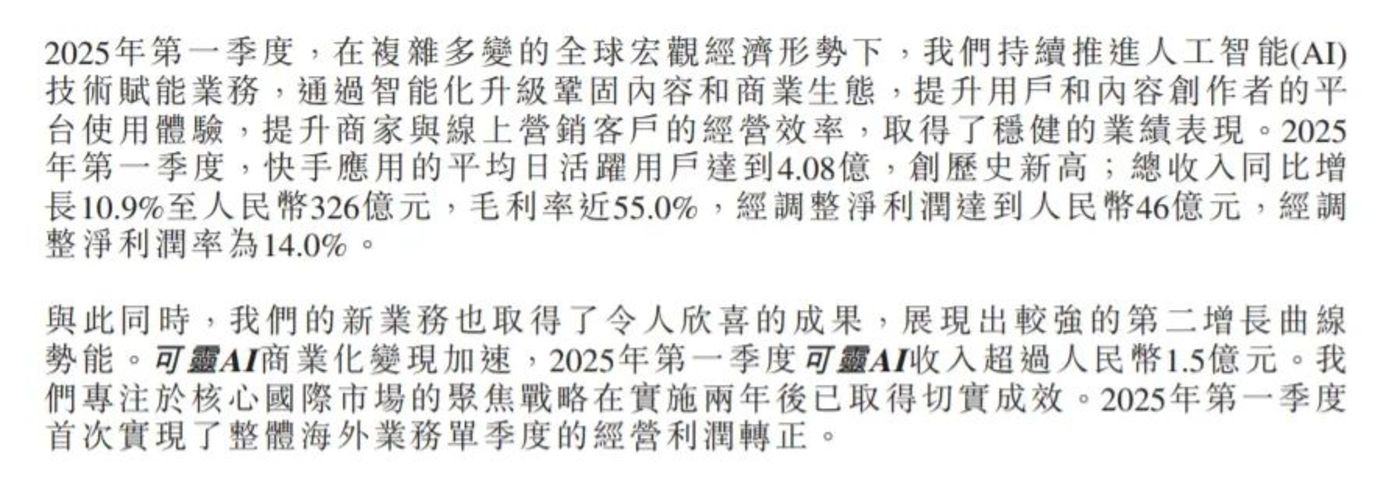 2025 年 5 月 27 日快手发布一季度财报,重点提及旗下可灵 AI 该季度收入超 1.5 亿元。次日其港股高开 6.46%,后续持续上涨,截至 7 月 15 日涨幅已超 30%。