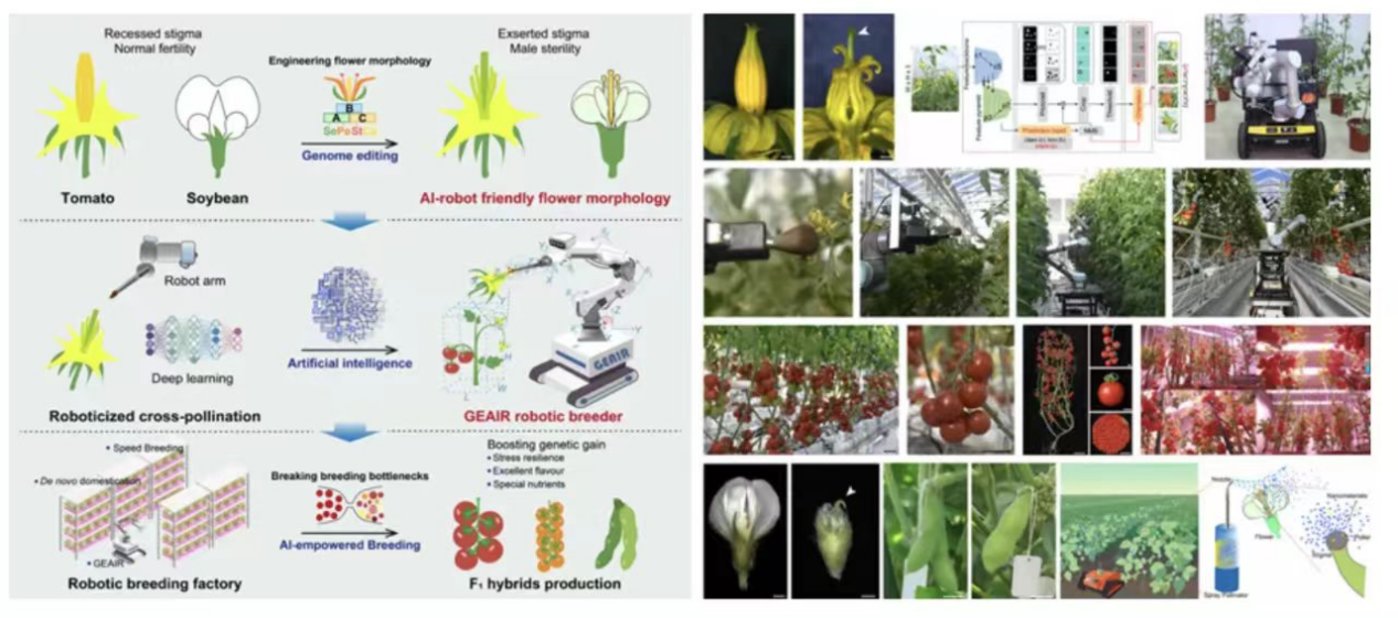 该机器人通过生物技术 (BT)+人工智能 (AI) 深度融合,首次提出作物-机器人协同设计理念,利用基因编辑重新设计作物花型,快速精准创制 「机器人友好」 的结构型雄性不育系,运用深度学习和人工智能成功研制。