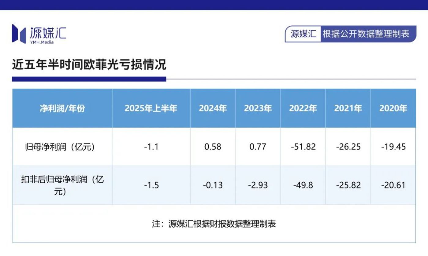财报数据显示,2020 年至 2025 年上半年,欧菲光扣非后归母净利润已经连续五年半时间处于亏损状况,累计亏损超百亿元。