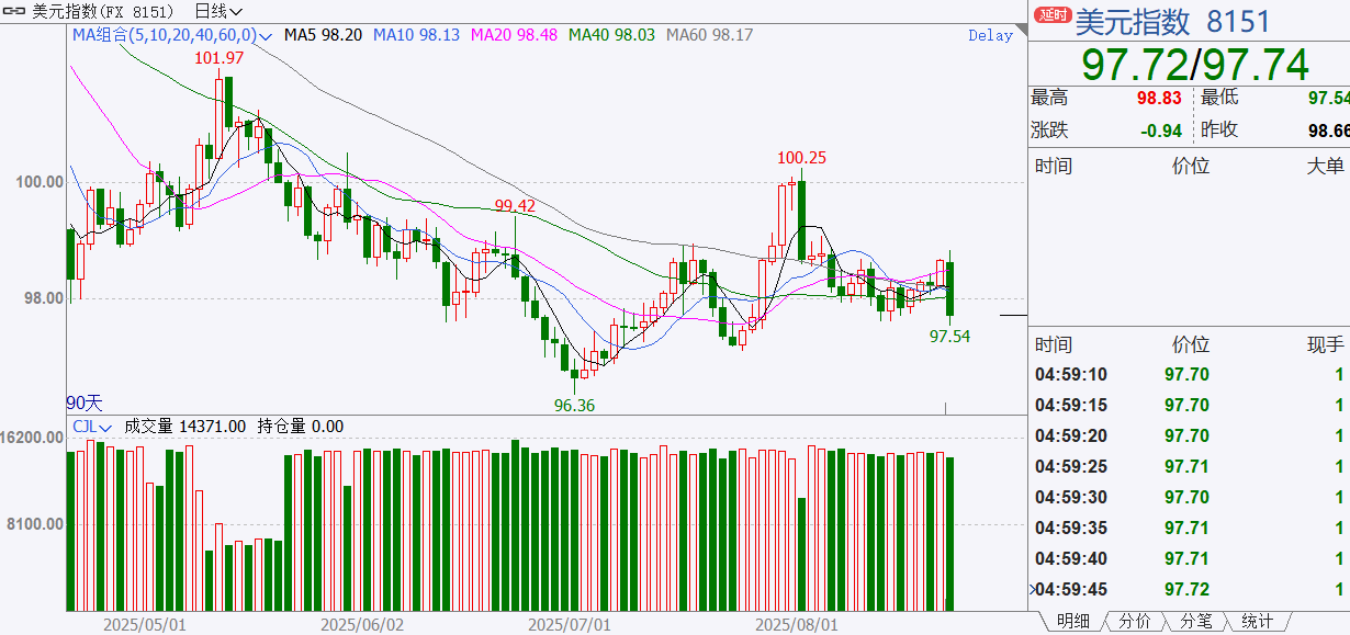 在期货方面,在鲍威尔讲话的影响下,市场对 9 月降息的押注概率从 75% 飙升至 90%,美元指数跳水,黄金、有色金属期货直线拉升。相比 A 股的火爆行情,目前黄金、白银、有色金属期货经过一段时间的盘整后,周五才刚启动。