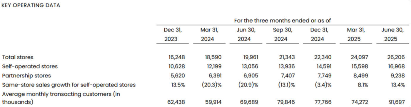 还值得注意的是,瑞幸咖啡 2025 年第二季度销售及市场推广费用为 5.925 亿元,较 2024 年同期的 4.326 亿元增长 37.0%。该增长主要由于广告及其他推广费用以及支付给第三方外卖及直播平台的佣金增加。