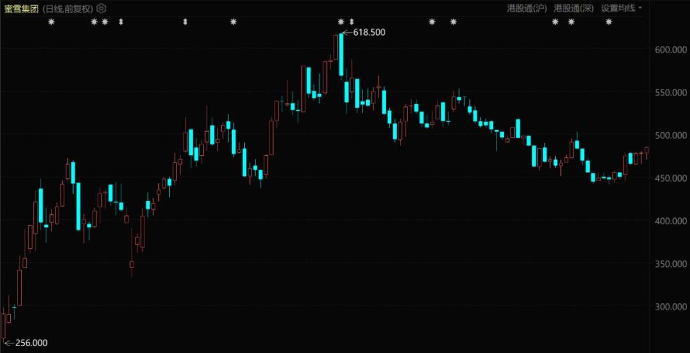蜜雪集团股价表现 (自 2025 年 3 月至今)