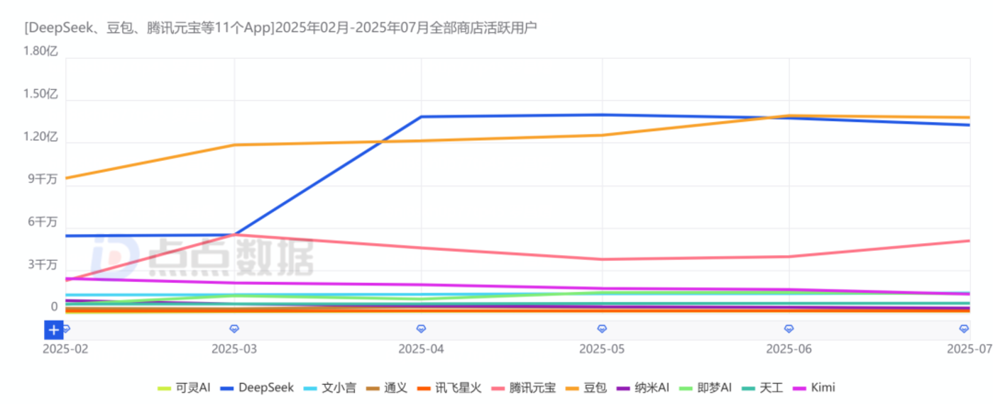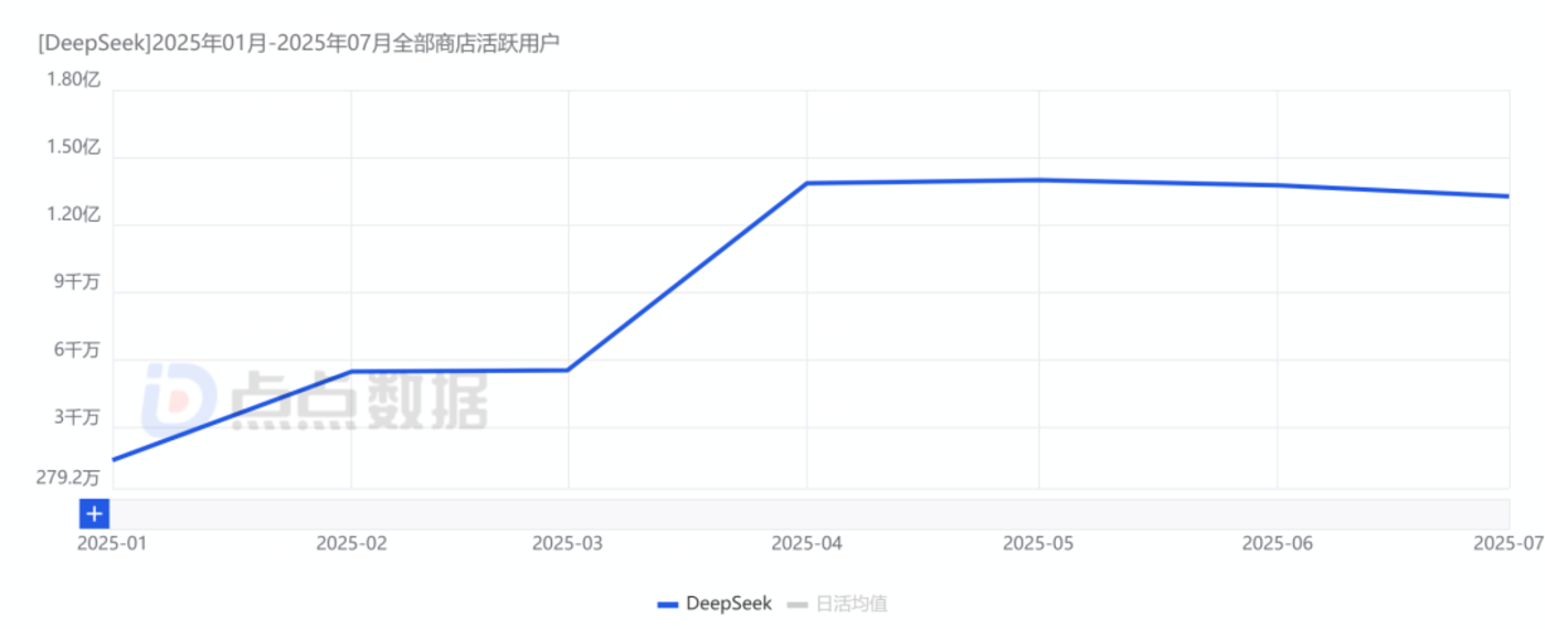 DeepSeek2025 年至今月活用户趋势. 点点数据