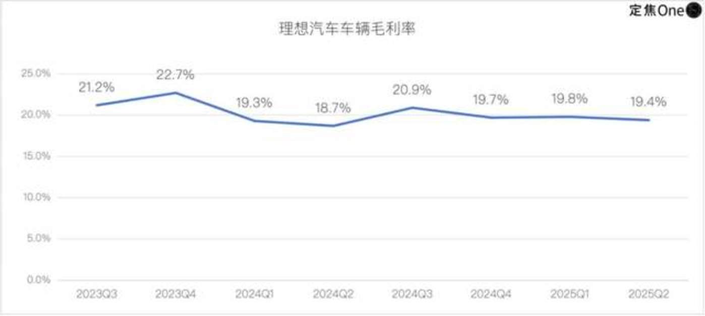 二季度,理想的公司毛利率是 20.1%,实际卖车毛利率是 19.4%,基本符合预期。对比去年同期,两项指标分别提升了 0.6、0.7 个百分点。对比同行,理想的毛利率水平依然超过特斯拉和国内多数新造车企业。