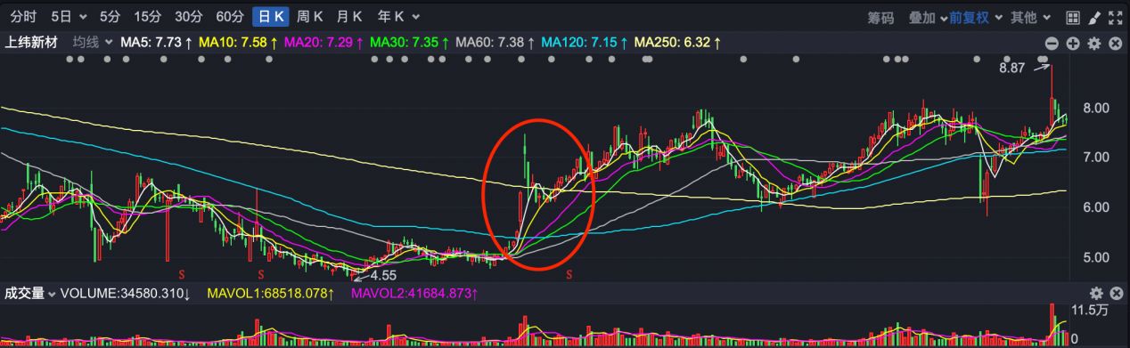 最为神奇的是,去年 「924」 行情期间,大量个股爆发式上涨,而上纬新材竟然没有收获一个涨停板。