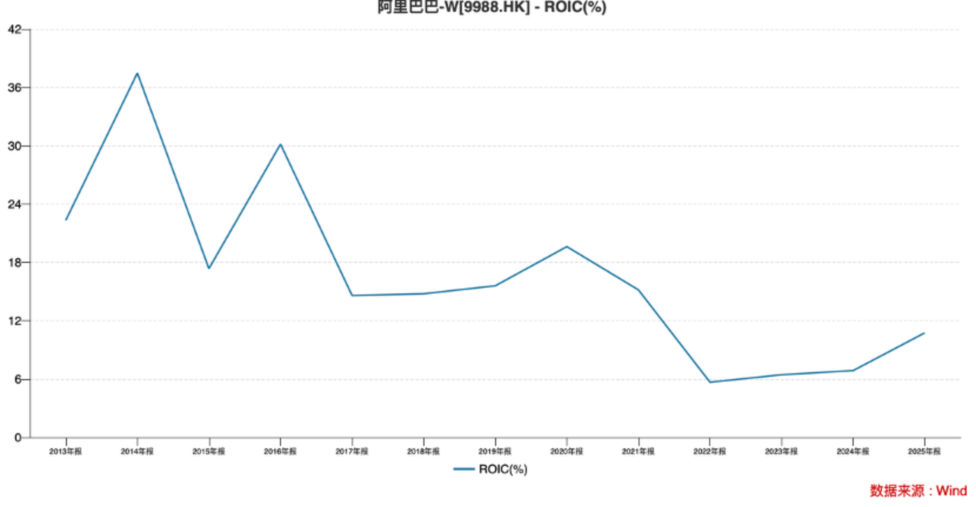 但在此前阿里集团一系列的优化措施下 (包括但不限于回归业务主航道,出售非核心资产等),阿里经营效率得到明显改善,ROIC 等指标也重新回到双位数,为短期淘宝闪购的进击提供了物质保障;
