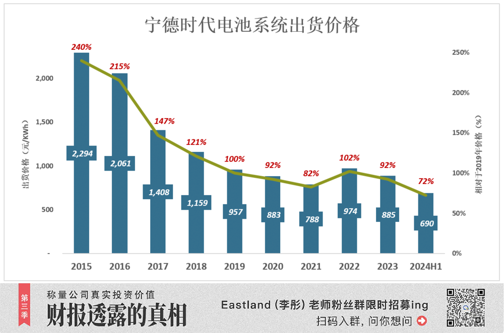 2024 年 H1,电池系统出货价跌破 700 元整数关口,为 2019 年的 72%。