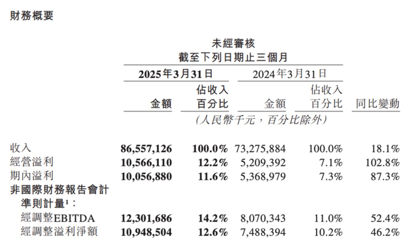 透过财报,也能感受到美团的气定神闲。2025 年 Q1,美团营收为 865.57 亿元,同比增长 18.1%;经调整 EBITA 为 123.02 亿元,同比增长 52.4%。其中,美团核心本地商业业务营收 643.25 亿元,同比增长 17.75%;经营溢利 134.91 亿元,同比增长 39.09%。