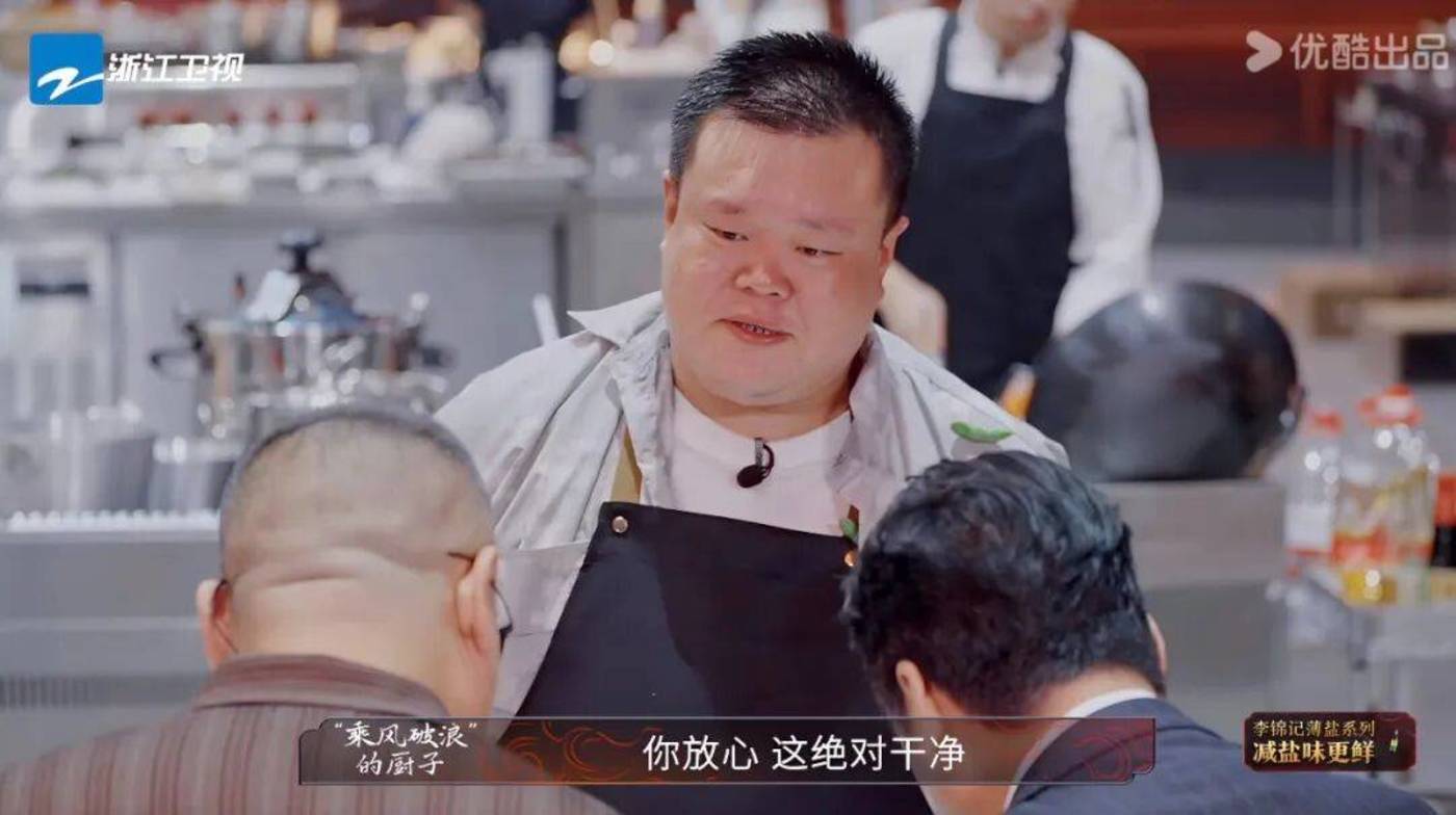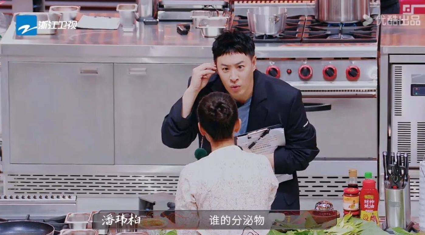 这个设计有利有弊。优点在于,「内娱知名吃货」 潘玮柏、「前餐饮从业者」 岳云鹏给节目引入了贴近老百姓的口味角度,他们的试吃品鉴环节娱乐效果拉满,岳云鹏手痒痒也要颠上几勺、潘帅哭着喊着 「乞求」 多喝一碗鸡汤,给令人窒息的竞技场平添了几分轻松,也拉近了高端厨师和吃货观众的心理距离。