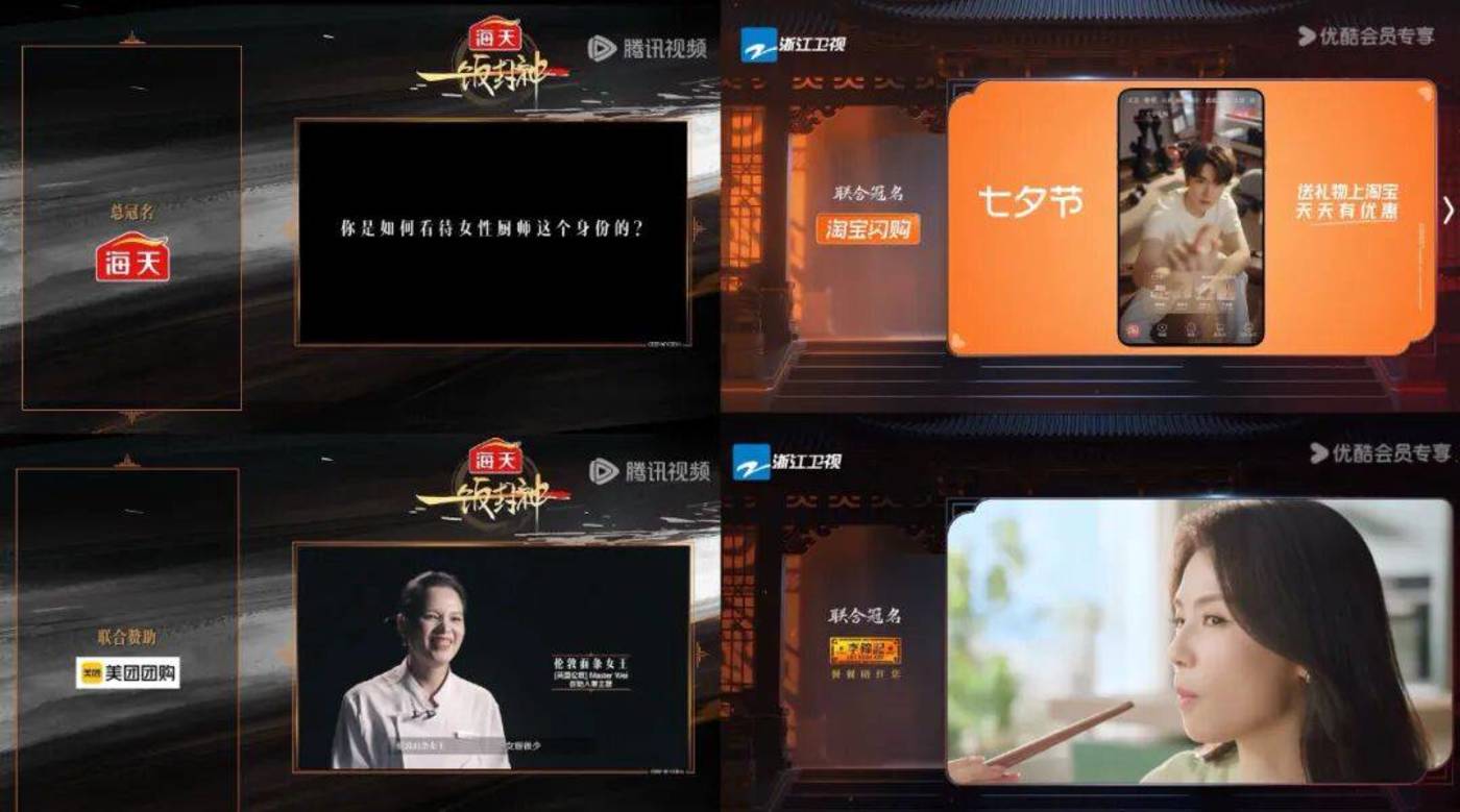 如文章开头所言,《一饭封神》 开播便狂揽 6 大品牌金主,《炙热游戏》 更不仅成功推动让李锦记& 淘宝闪购来联合冠名,且最终邀到 8 家不同行业品牌高调赞助。在这其中,农夫山泉更是来者不拒投放了两个节目,彰显了饮品品牌对厨师综艺的高度信任。