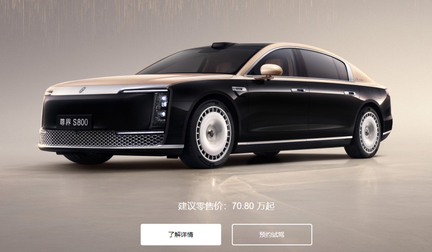 另一家对超豪车进行布局的,是华为和江淮汽车采用鸿蒙智行模式合作推出的汽车品牌尊界。今年 5 月 30 日,尊界推出了旗下首款车型 S800,定价 70.8 万元-101.8 万元,宣称要打造 「中国人自己的百万豪车」。