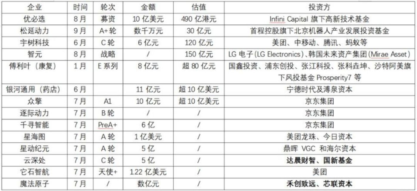 (2025 年主要机器人企业融资列表,蓝鲨财经社根据公开资料整理)