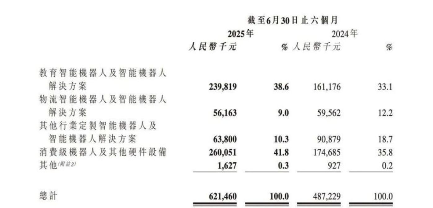 8 月 29 日,「人形机器人第一股」 优必选公布了 2025 年上半年的财报,营收 6.21 亿元,同比增长 27.5%;亏损 4.40 亿元,同比减亏 18.5%;毛利 2.17 亿元,同比增长 17.3%。优必选半年报里,教育智能机器人及解决方案收入 2.4 亿元,同比增长 48.8%,占营收的比例为 38.6%(比 2024 年同期增加 5.5%)。