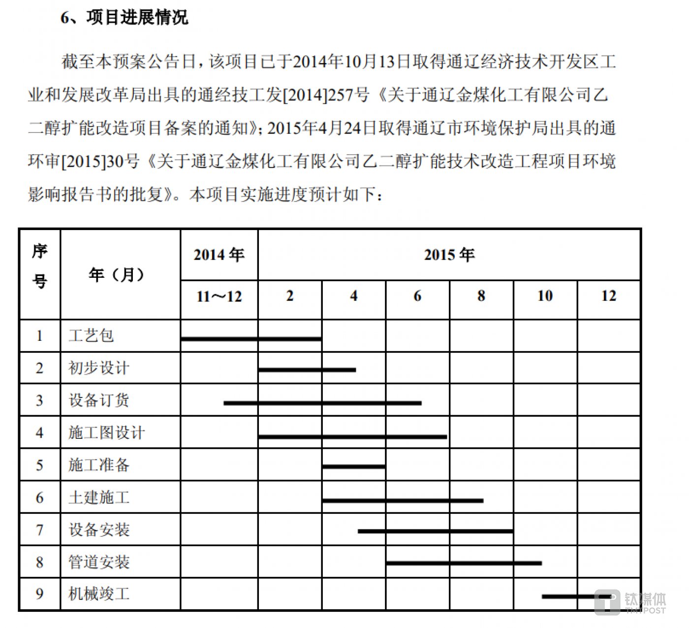 对于此次募投项目,丹化科技在发行情况报告书中表示,对煤制乙二醇生产装置进行扩能技改,不仅能够扩大产能,提升规模效益,进一步推动煤制乙二醇产业化,而且能降低生产成本,节能降耗;购买通辽金煤 16.99% 股权,提升对通辽金煤的控股比例,有利于提高通辽金煤决策效率,推进煤制乙二醇扩能技改和产业化进程。