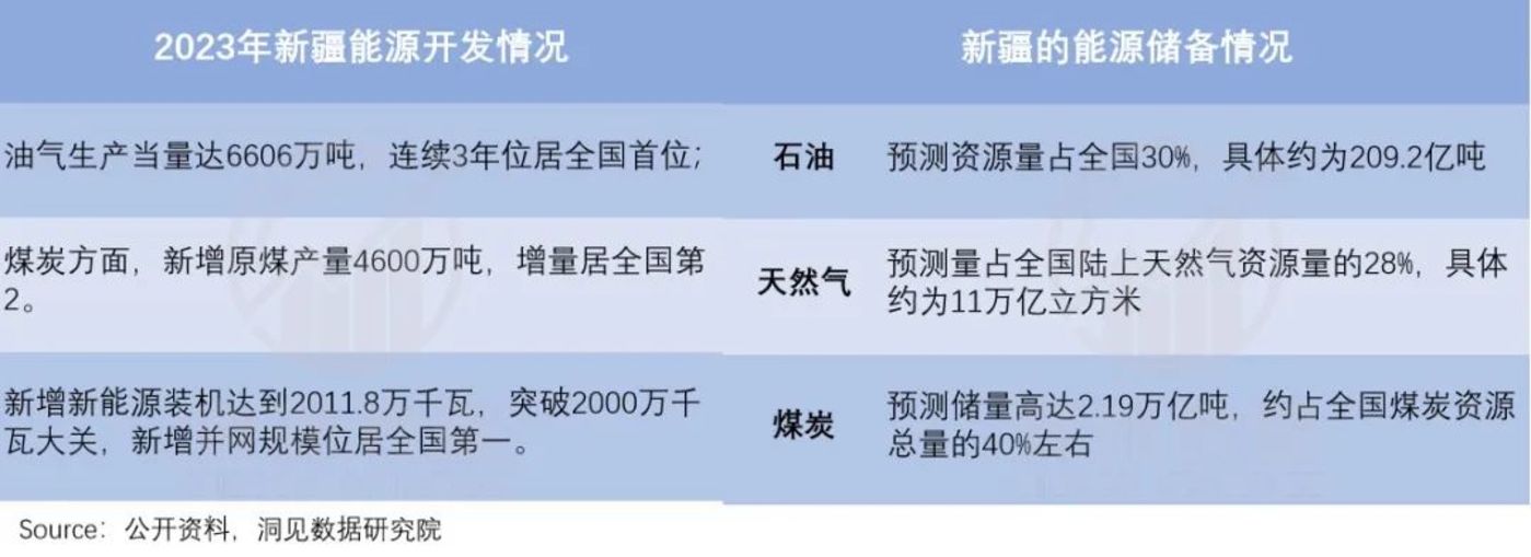 直接扶持之外,近几年随着开发技术和环保措施的不断精进,新疆的产业开发也逐渐放开——如下图,新疆的煤油气产量均已全国数一数二;新能源装机规模也蹭蹭突破。