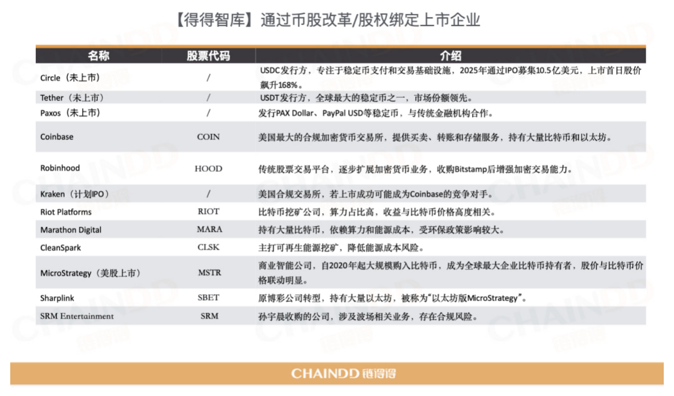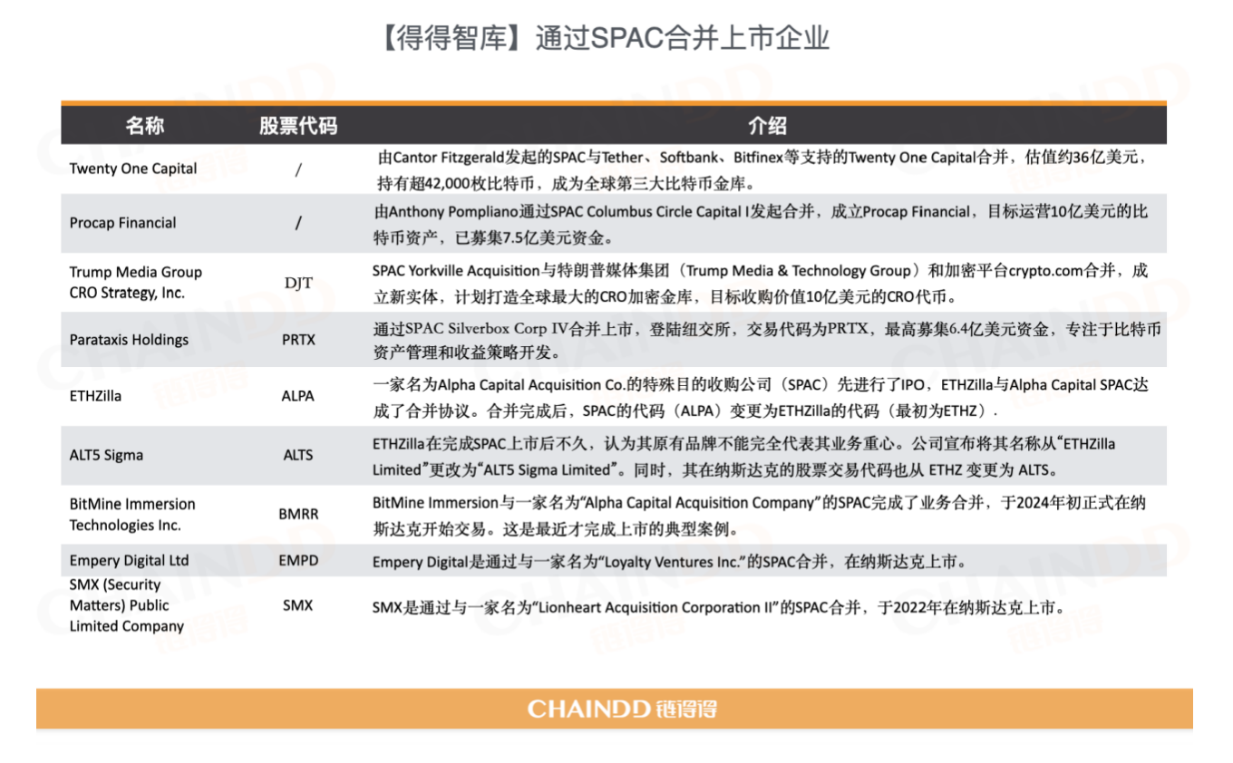 随着美股等传统金融市场对核心加密资产的持续增持,部分加密货币市场从业者也找到了从传统金融市场获取流动性和资金的新通道。近年以来以稳定币概念股 Circle、加密货币金库股 MicroStrategy、特朗普加密概念股 ALTS、孙宇晨的波场 TRON 借壳纳斯达克公司 SRM 上市、特朗普家族支持的挖矿公司 American Bitcoin 通过合并借壳、SPAC Yorkville Acquisition 与特朗普媒体集团以及加密平台 Crypto.com 三家合并成立的 Trump Media Group CRO Strategy,Inc 等案例层出不穷,在美股市场上名利双收,该路径至今还在引发加密行业项目的持续追捧。