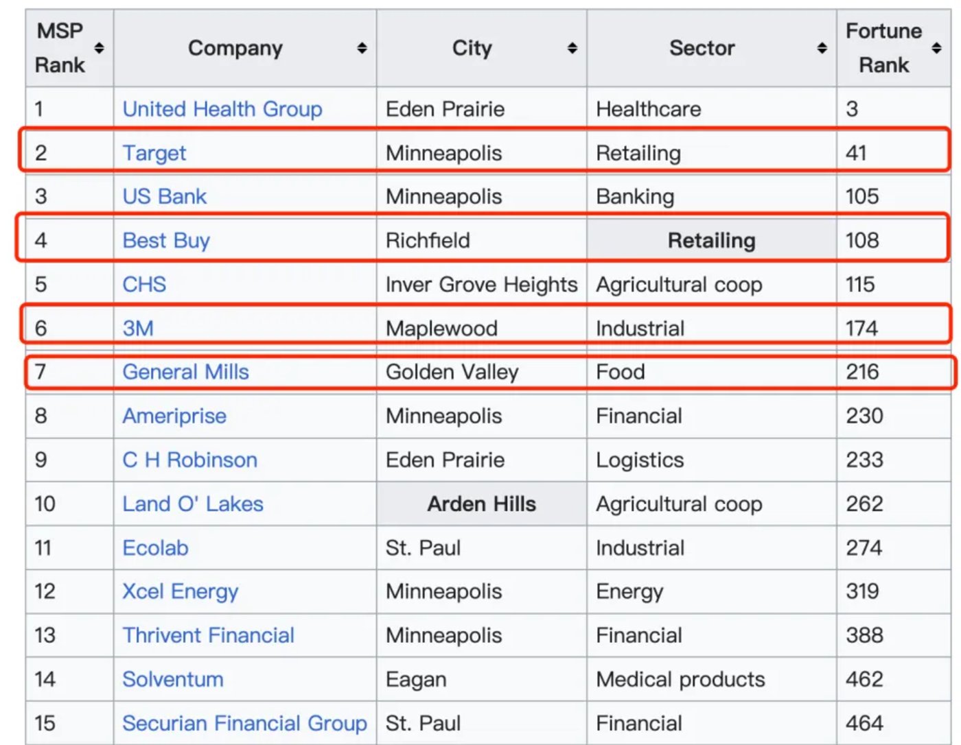 明尼阿波利斯-圣保罗地区拥有 23 家 《财富》1000 强企业总部,比如中国消费者较为熟悉的哈根达斯的母公司通用磨坊 (General Mills) 和防霾口罩的制造商 3M 公司。当然,还有塔吉特和百思买。