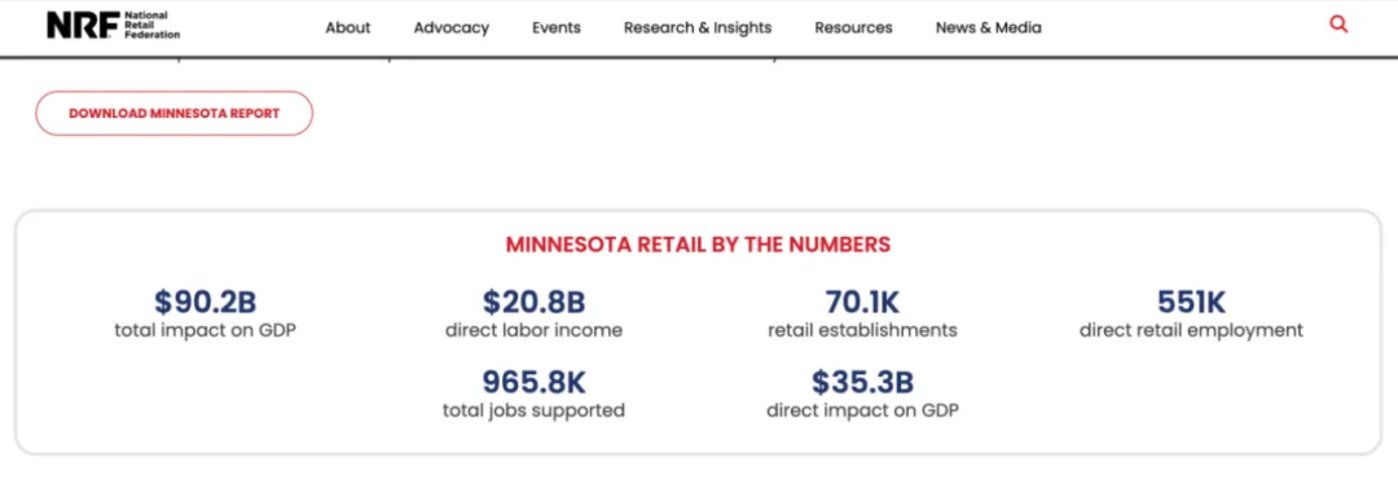 零售业对明尼苏达州经济的重要性可见一斑。