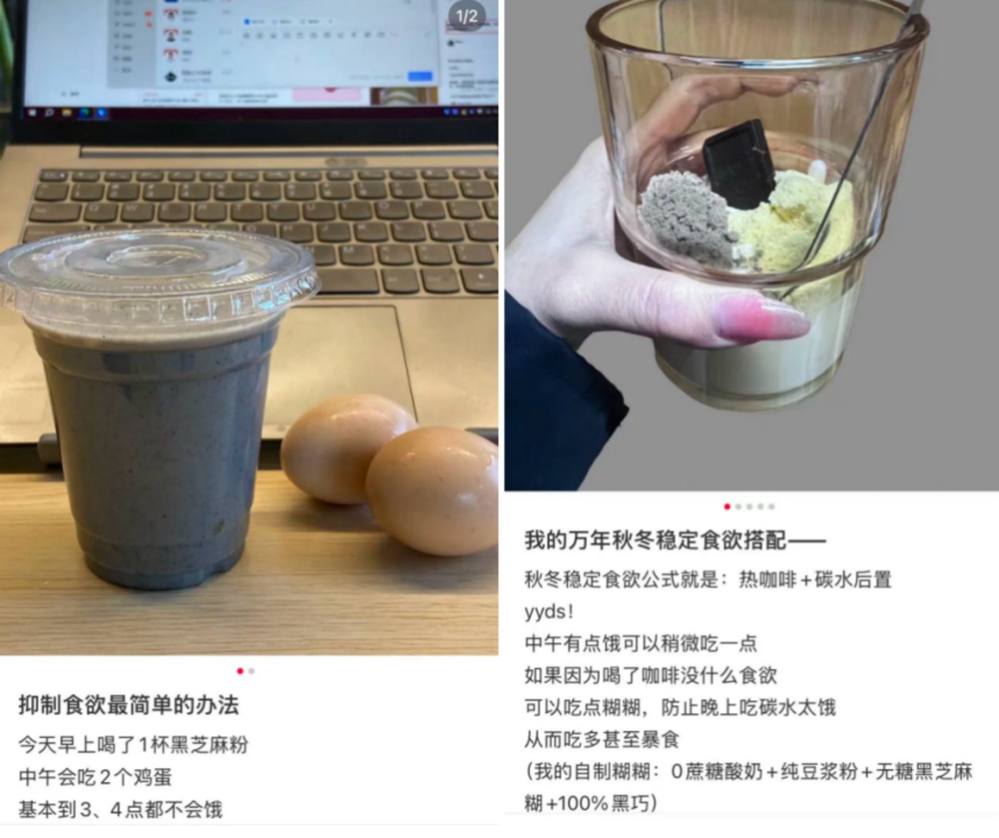 浓缩豆浆、无糖黑芝麻糊、玉米须茶、可可粉等老式冲泡饮品,都以打辅助和平替的形式,成为新时代的 「稳定食欲+防暴食两件套」。冲泡类饮品从未真正消失,而是换了个形式,对应到更适合白领年轻人的应用场景中。并以一种曲折的形式回归,在减肥液断的需求下再次复活。